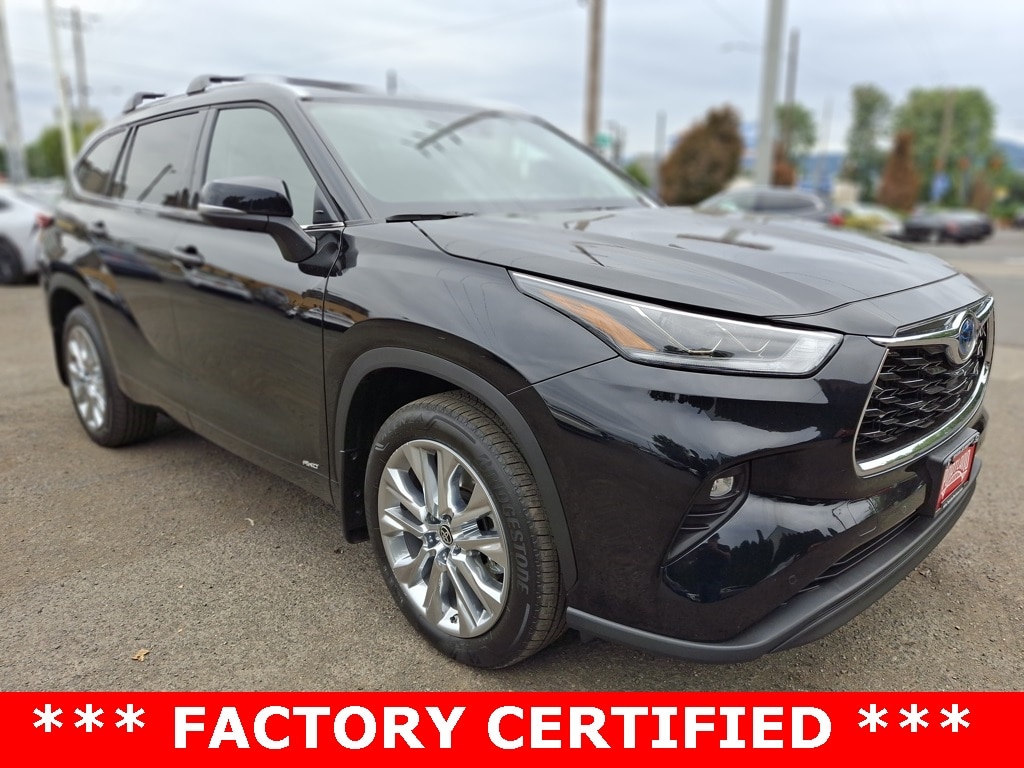 The 2023 Toyota Highlander Hybrid Limited in Midnight Black Metallic offers premium comfort, family-friendly versatility, and the efficiency of Toyota's proven hybrid technology. Toyota of Portland proudly presents this Toyota Gold Certified Pre-Owned SUV, assuring you of a like-new vehicle with factory-backed coverage. Inside, the Black leather-trimmed cabin features heated and ventilated front seats, a heated steering wheel, heated second-row seats, and three-zone automatic climate control. A panoramic moonroof brightens the cabin, while the 12.3-inch Toyota Audio Multimedia system with JBL premium audio, navigation, Apple CarPlay, and Android Auto keeps everyone connected and entertained.