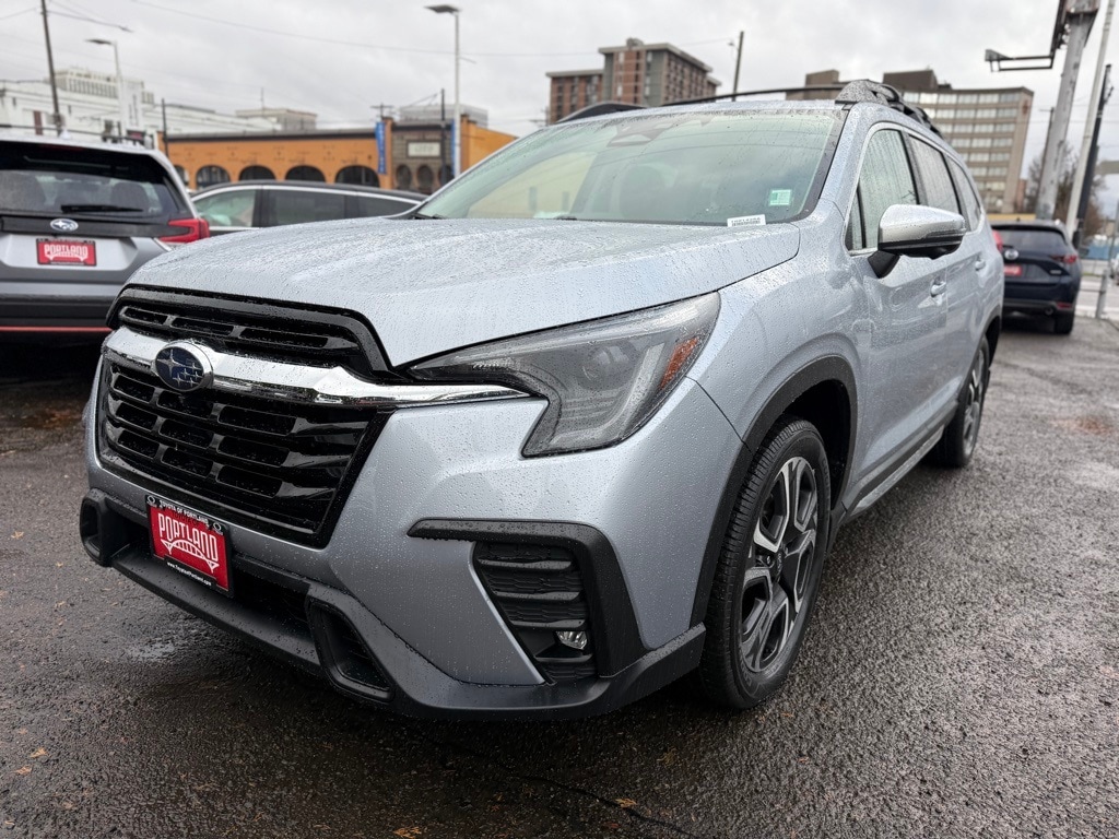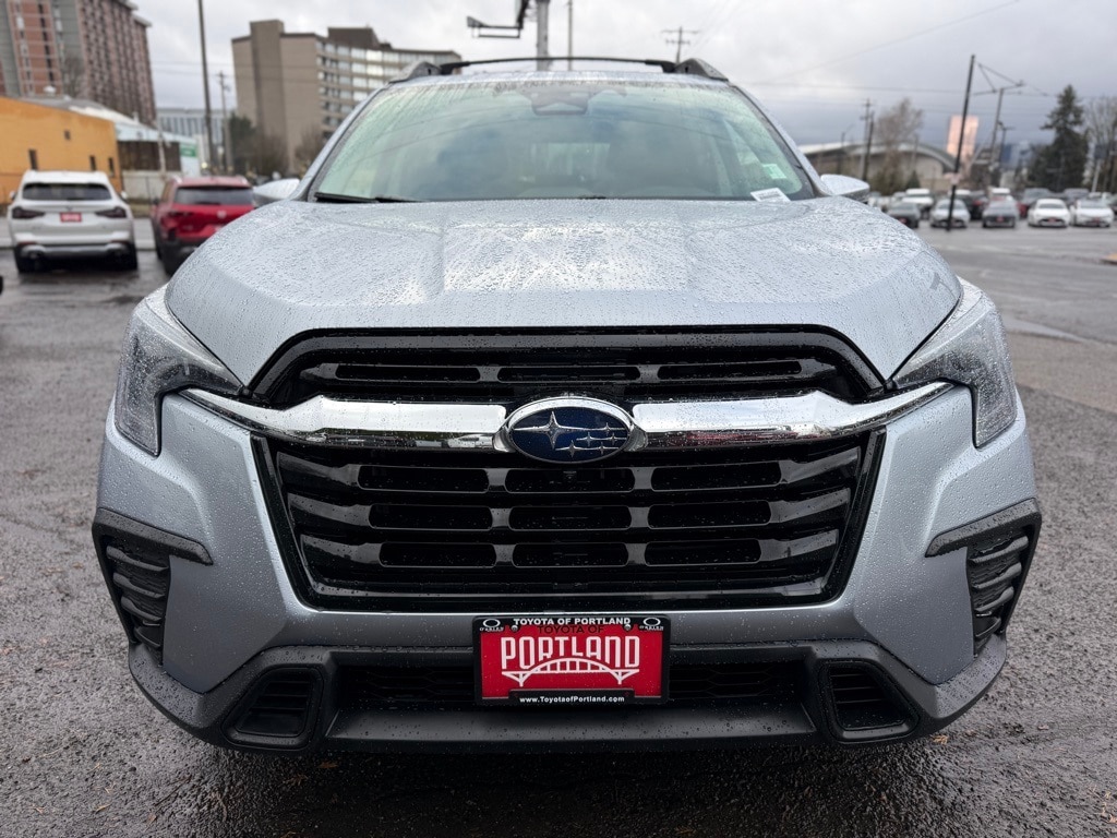 The 2023 Subaru Ascent Limited 8-Passenger is a spacious, all-wheel-drive SUV equipped with a 2.4L 4-cylinder engine and a Lineartronic CVT transmission. The vehicle has an odometer reading of 29,839 miles and is finished in Ice Silver Metallic with a stylish black leather interior. It is being offered for sale by Toyota of Portland as a used retail vehicle.