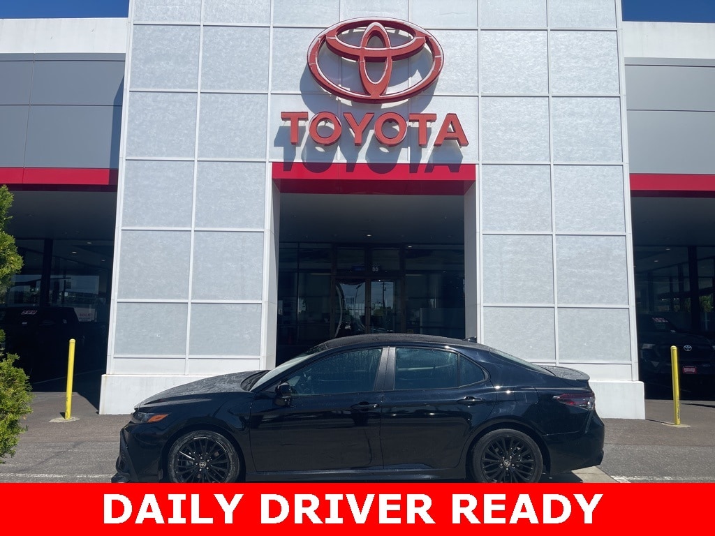 BACKUP CAMERA, COMPLIMENTARY CARFAX, LOCAL TRADE, MP3, NON-SMOKER, ONE OWNER CARFAX, Hybrid Synergy Drive System 2.5L 4-Cyl Engine 208 Combined System Net Horsepower Electronic Continuously Variable Transmission (ECVT) w/Paddle Shifters Sport-Tuned Suspension, Toyota Safety Sense 2.5+: Pre-Collision Sys w/Pedestrian Detection, Full-Speed Dynamic Radar Cruise Control, Lane Departure Alert w/Steering Assist, Lane Tracing Assist, Automatic High Beams, Road Sign Assist Star Safety System Backup Camera, 18-in Black Alloy Wheels Bi-LED Combination Headlights w/Auto On/Off Feature LED DRLs w/On/Off Feature Black Front Grille w/Sport Mesh Insert Black Mirror Caps, Shark Fin Antenna, Rear Spoiler, Window Moulding, Exterior Door Handles, and Rear Badges, Audio - 7-in Touchscreen, 6 Speakers, Hands-Free Bluetooth Phone/Music, USB Media Port, 2 USB Charge-Ports, SiriusXM w/3-Month Platinum Trial, Android Auto & Apple CarPlay Compatible 4.2-in TFT Multi-Information Display Sport Fabric SofTex-Trimmed Seats Power Driver Seat w/lumbar support Dual-Zone Auto Climate Control Smart Key System w/Push Button Start For Full Product Details Please Visit Toyota.com/camryhybrid, Apple Car Play, Android Auto, Camry Hybrid Nightshade, 4D Sedan, 2.5L I4 DOHC 16V, Apple CarPlay/Android Auto, Automatic temperature control, Brake assist, Electronic Stability Control, Exterior Parking Camera Rear, Front Bucket Seats, Fully automatic headlights, Nightshade Edition, Power driver seat, Split folding rear seat.